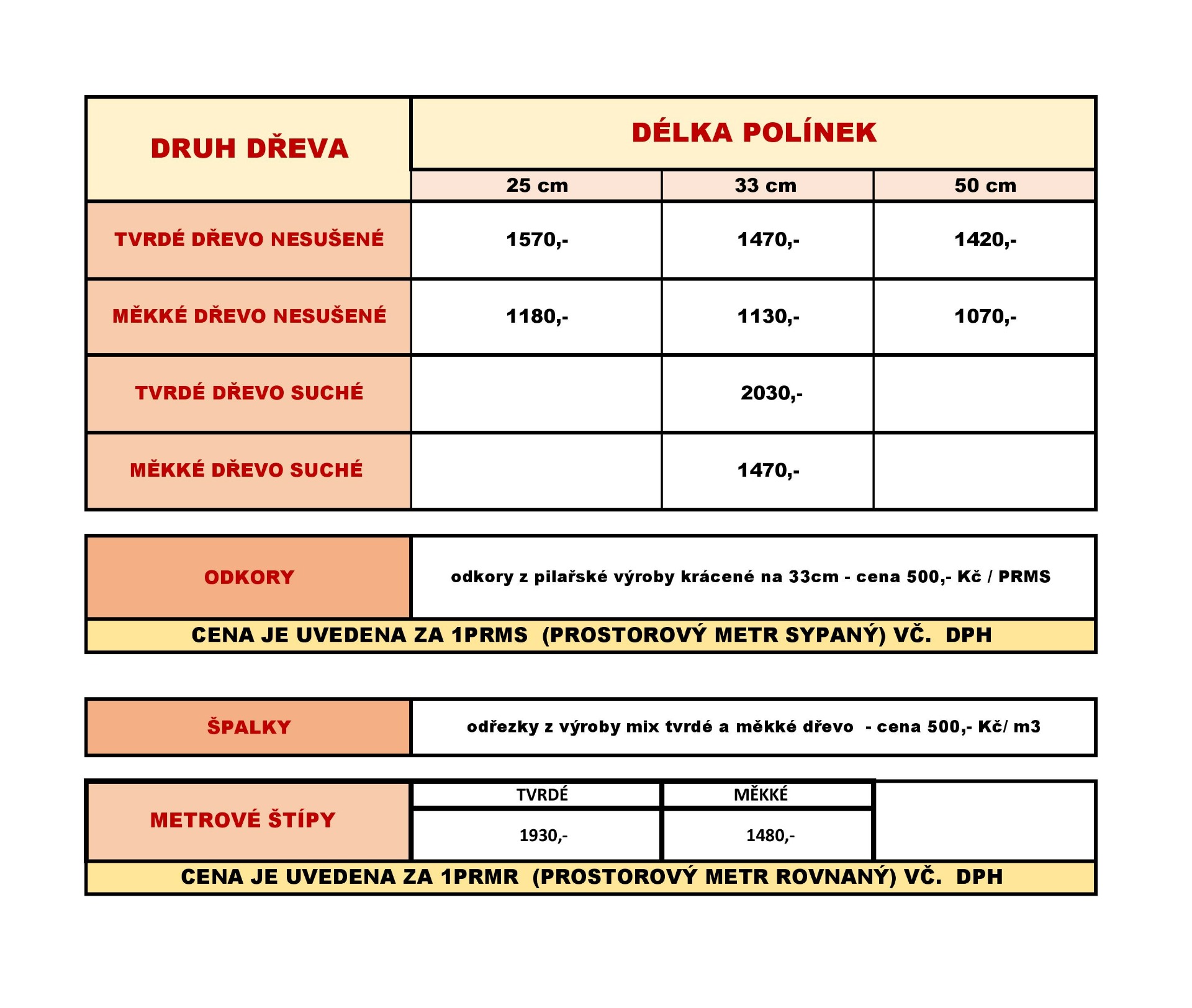 Aktuální ceník palivového dřeva